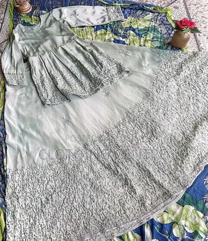Elegant ethnic wear featuring a medium-sized pistachio green lehnga choli ensemble crafted from high-quality crape silk fabric with intricate cut dana embroidery work, perfect for special occasions.