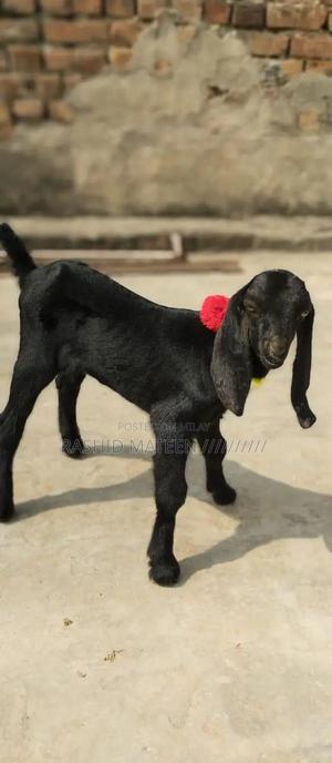 Young 12-day-old black Beetal female goat kid in excellent health. Robust and active, with good body structure. Easily fed by bottle and shows promising growth potential. Ideal for breeding or farming purposes.