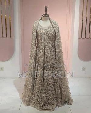 Beautiful dress suitable for wedding, mehndi, and other formal events. High-quality fabric in rich brown tone. Perfect for brides seeking a stylish and sophisticated look.